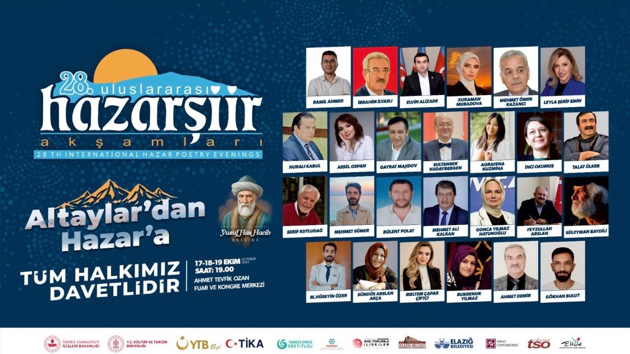 Elazığ Belediyesi ve Elazığ Valiliği iş birliğiyle, İçişleri Bakanlığı, Kültür ve Turizm Bakanlığı, Yurt Dışı Türkler ve Akrabalar Topluluğu (YTB), Yunus Emre Enstitüsü, Türk İşbirliği ve Koordinasyon Ajansı (TİKA), Sivil Toplumla İlişkiler Genel Müdürlüğü, TÜRKSOY, Fırat Üniversitesi, Elazığ Ticaret ve Sanayi Odası (ETSO) ve Eltürk-Der’in katkılarıyla düzenlenecek 28. Uluslararası Hazar Şiir Akşamları, Türk Dünyası'nın dört bir yanından şairleri ve sanatçıları Elazığ’da bir araya getiriyor.