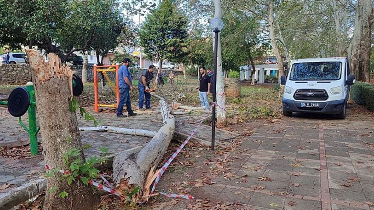 Adana'nın Kozan ilçesinde gece etkili olan fırtına nedeniyle Atatürk Parkı'nda 3 ağaç zarar gördü.