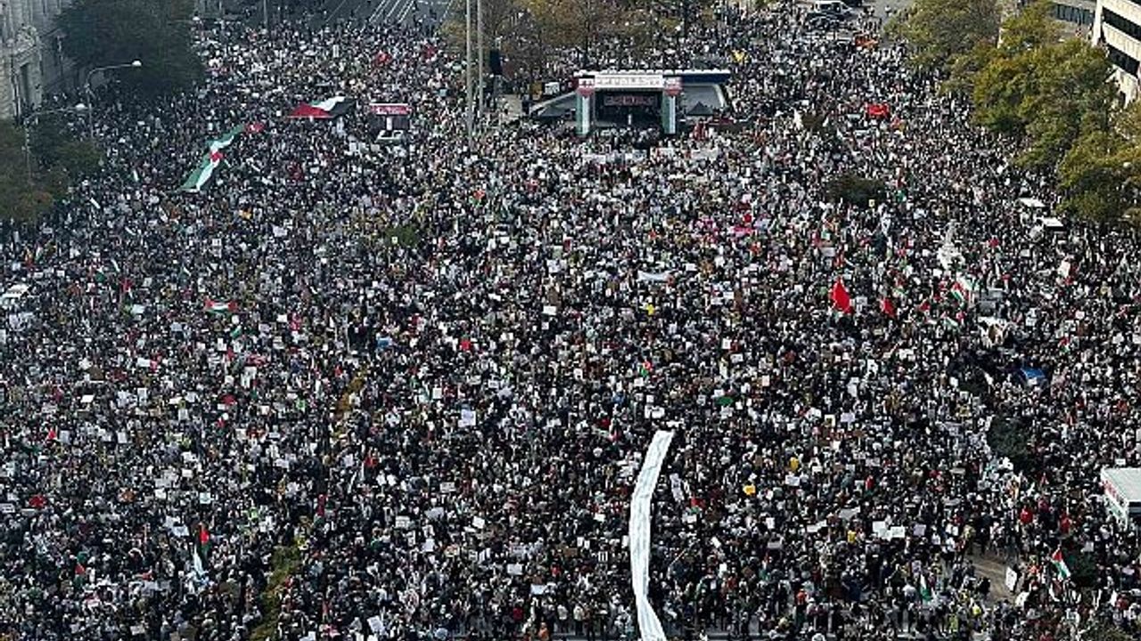 ABD'nin başkenti Washington DC'de binlerce kişi Filistin'e destek için toplandı, İsrail'in saldırıları protesto edildi.
