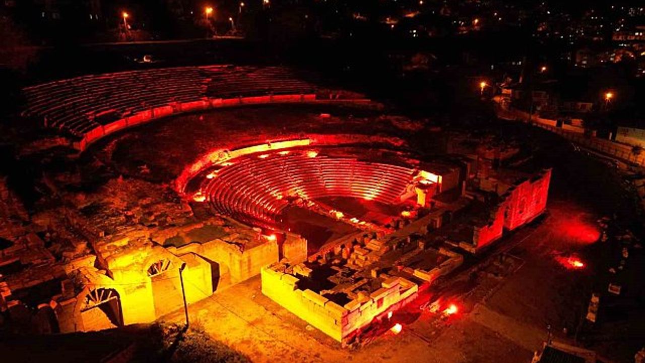 Düzce Belediyesi Lösemili Çocuklar Haftası dolayısıyla Konuralp Antik Kenti'ni löseminin farkındalık rengi olan turuncu ışık ile aydınlattı.
