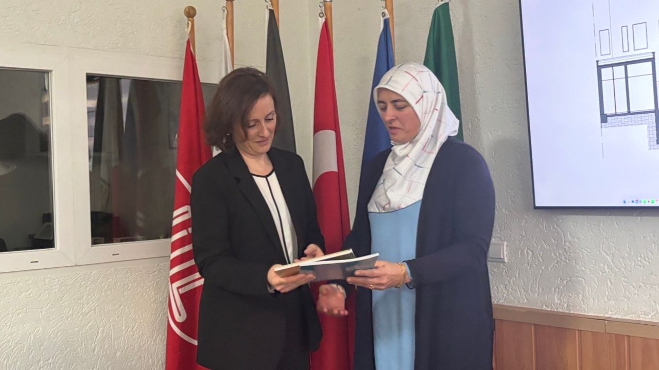Görüşme sonrası yönetim kurulu tarafından Aslı Sevindim'e DITIB Türk İslam Cemiyeti Duisburg Wanheimerort Ayasofya Camii derneğinin tarihini ve çalışmalarını içeren kitapçık hediye edildi.