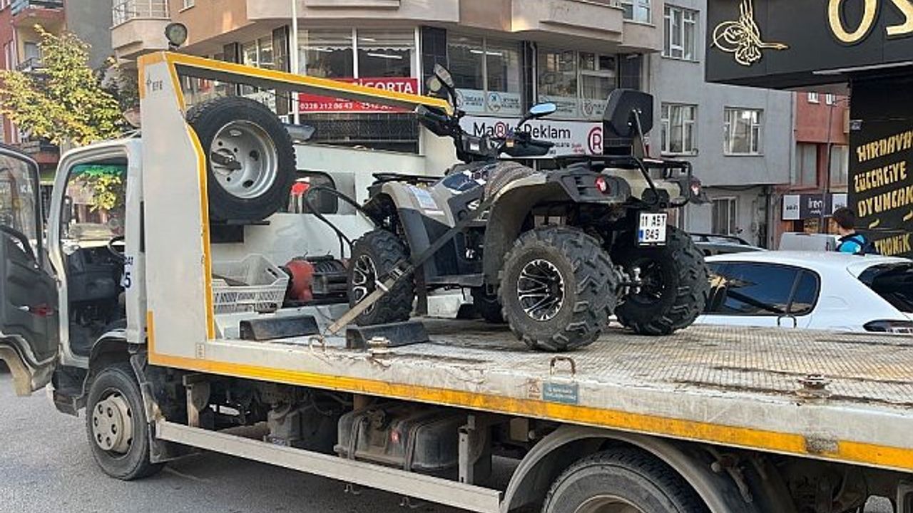 Alınan bilgilere göre, Bilecik merkez Teyfikbey Caddesinde seyir halindeki 11 ABT 849 plakalı ATV sürücüsü A.A., İl Emniyet Müdürlüğü önüne geldiğinde drift attı. Ardından İl Emniyet Müdürlüğü önündeki polisler tarafından durdurulan şahsa işlem yapılması için trafik ekipleri çağrıldı. Şahsa 20 bin 342 TL idari ceza yazılırken, aracı 2 aylığına bağlandı. Ehliyetine de 2 ay süreyle el konulan şahısın yaptığı bu hareketi pahalıya patladı.