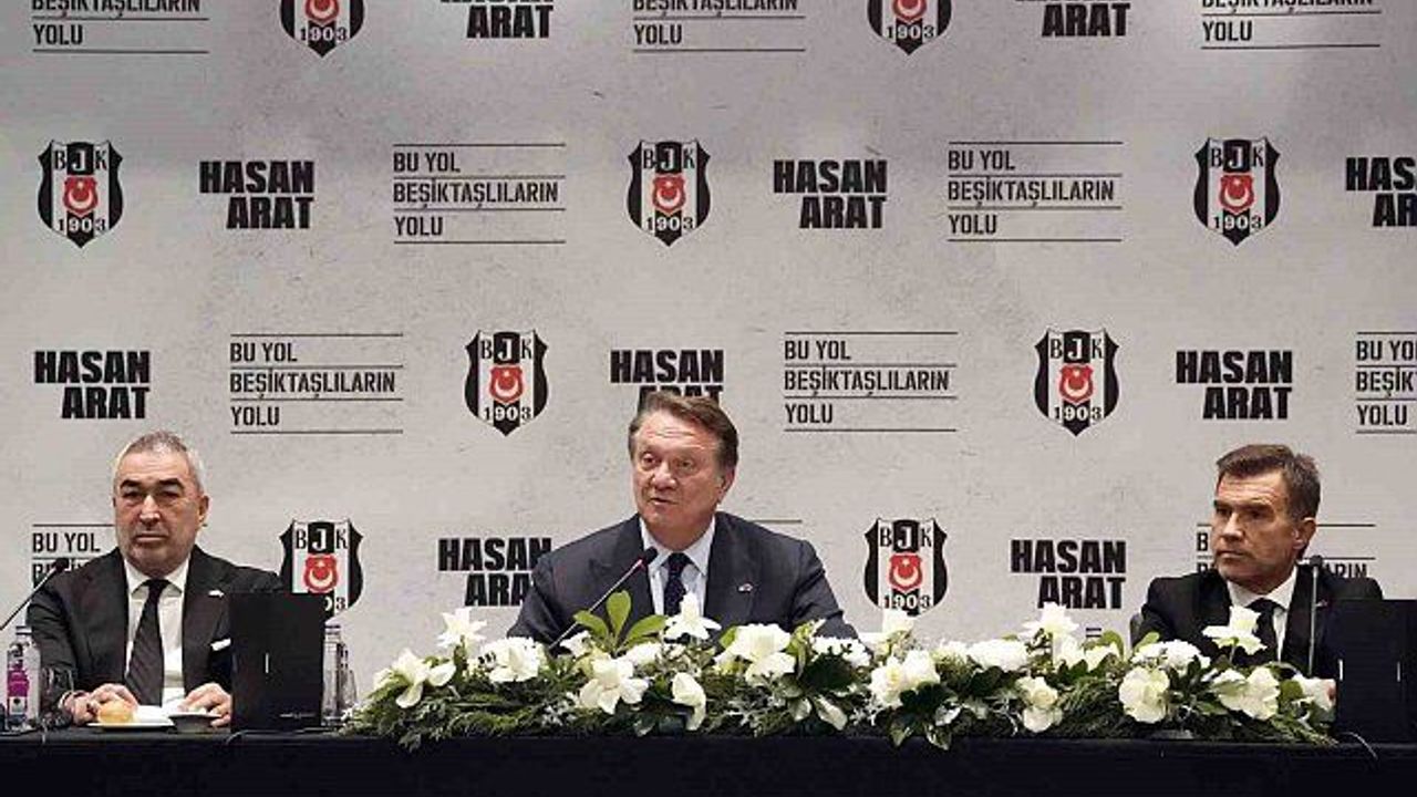 Beşiktaş'ta başkan adayı Hasan Arat, seçimi kazanması halinde 'Futboldan Sorumlu Yönetim Kurulu Üyesi' olacak Feyyaz Uçar ve 'Futbol Takımları Genel Koordinatörü' görevine getirilecek Samet Aybaba'yı basına tanıttı.