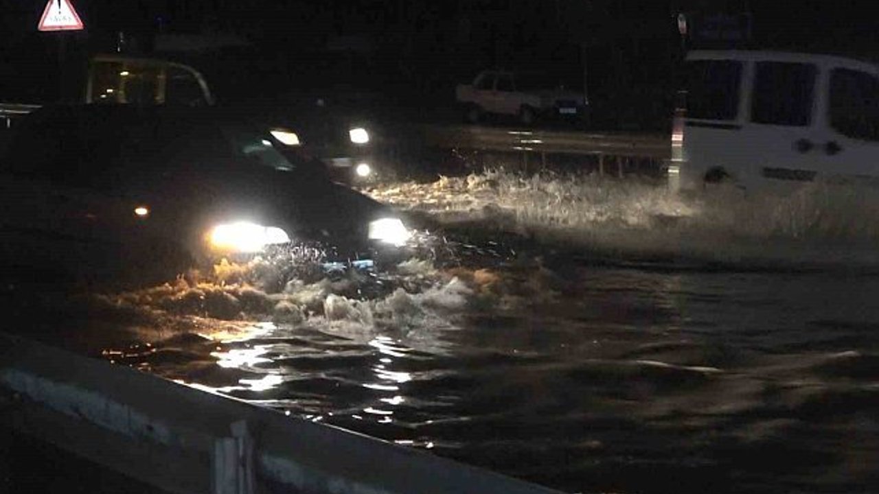Bursa'nın merkez ilçelerinde etkili olan yağıştan dolayı rögarlar taştı, caddeler göle döndü.