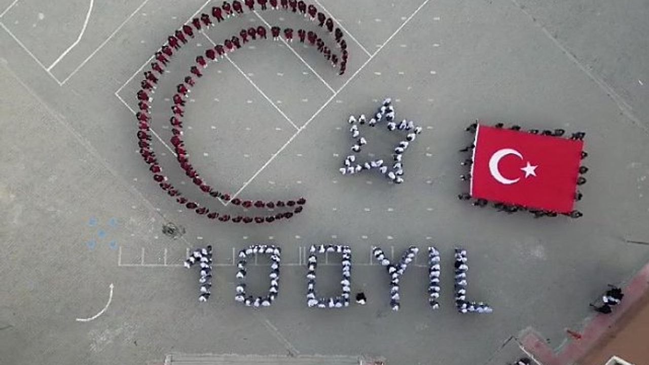 Öğrenciler, öncüler eşliğinde okul bahçesine gelerek 100. yıl logosu oluşturdu. 100. yıl anısına besteletilen Cumhuriyet Marşı eşliğinde '100. Yıl' koreografi büyük beğeni topladı. Öğrencilerin oluşturduğu '100. Yıl' koreografisi dron ile havadan görüntülendi.