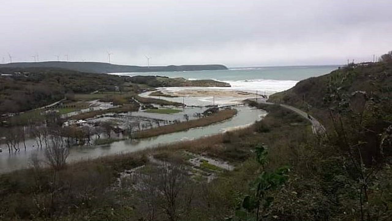 Kırklareli'nin Vize ilçesi Kıyıköy Beldesi'nde kötü hava şartları nedeniyle deniz taşarak dereye karıştı.