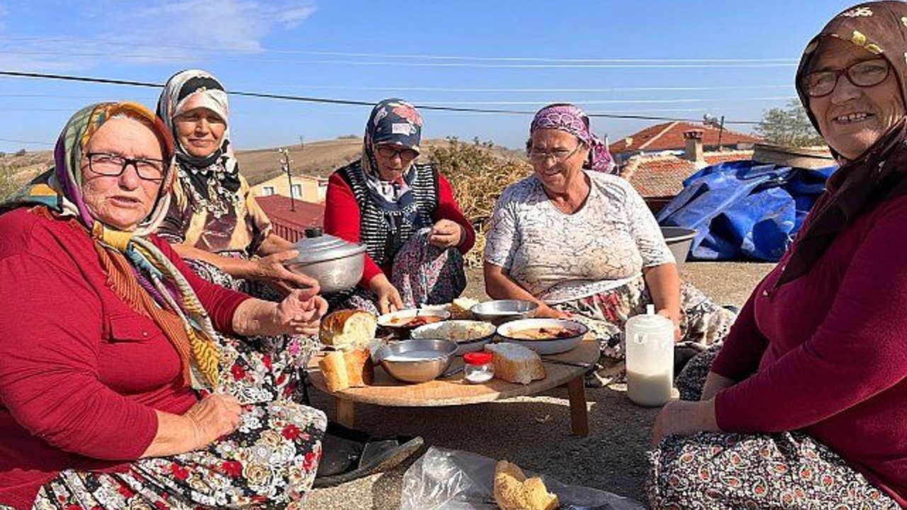 Edirne'de kuru fasulye hasadı yapan köylü kadınların, fasulyeleri tek tek ayıkladıktan sonra pişirip afiyetle hep bir arada yemesi ve bir kadının masadaki soğanı yumrukla kırması yüzlerde tebessüm oluşturdu.