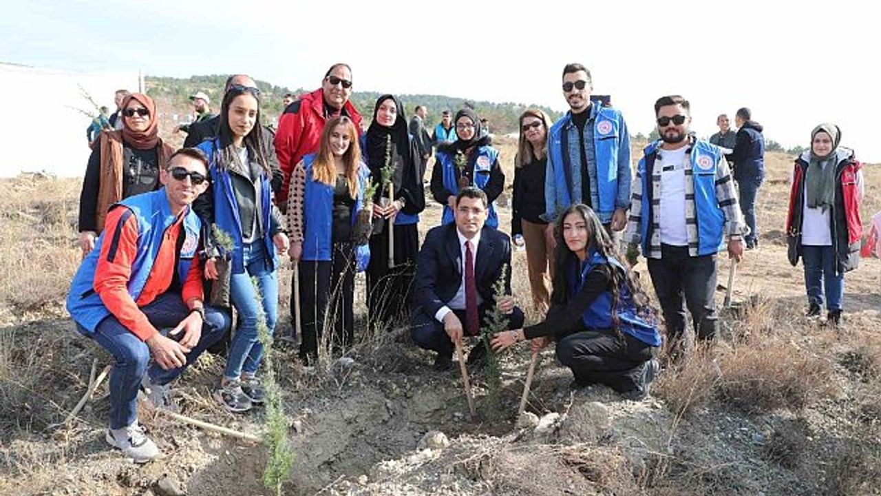 Erzincan'da 100. Yıl Cumhuriyet Ormanı'nda fidan dikim etkinliğinde binlerce fidan toprakla buluştu.
