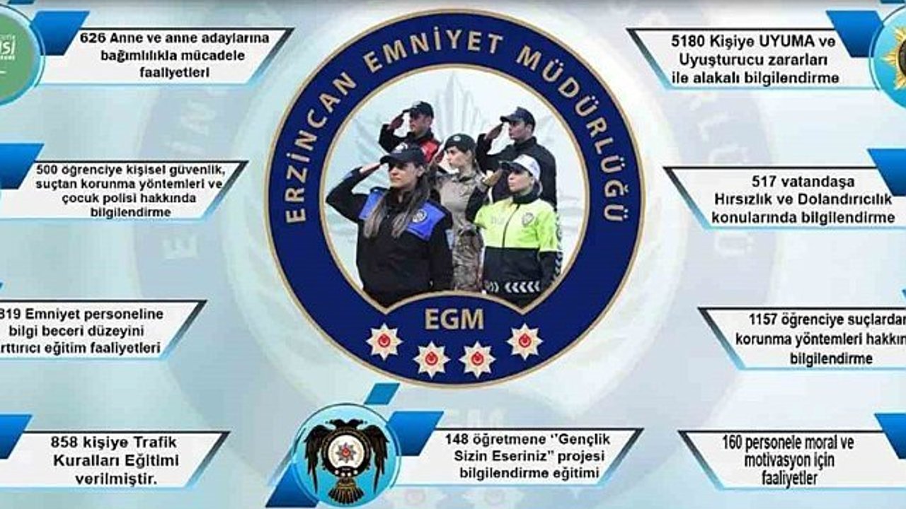 Erzincan'da 15-31 Ekim 2023 tarihleri arasında toplam 10 bin 965 kişiye suçla mücadelenin güçlendirilmesi ve polislik hizmetlerinin geliştirilmesi amacıyla bilgilendirme yapıldı.
