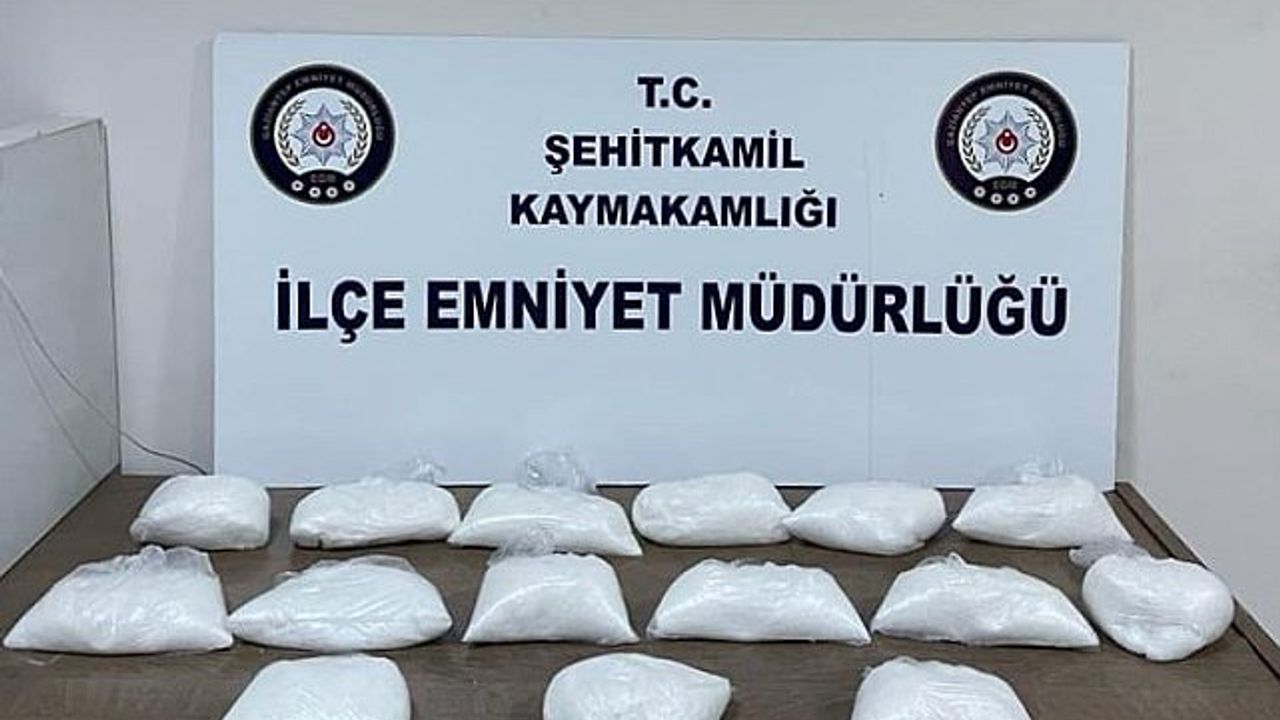 Gaziantep Emniyet Müdürlüğüne bağlı Şehitkamil İlçe Emniyet Müdürlüğü ekipleri, şüphe üzerine bir aracı durdurdu. Durdurulan araçta yapılan aramalarda 14 kilo 950 gram metamfetamin ele geçirildi. Olayla ilgili 1 şüpheli şahıs gözaltına alındı.