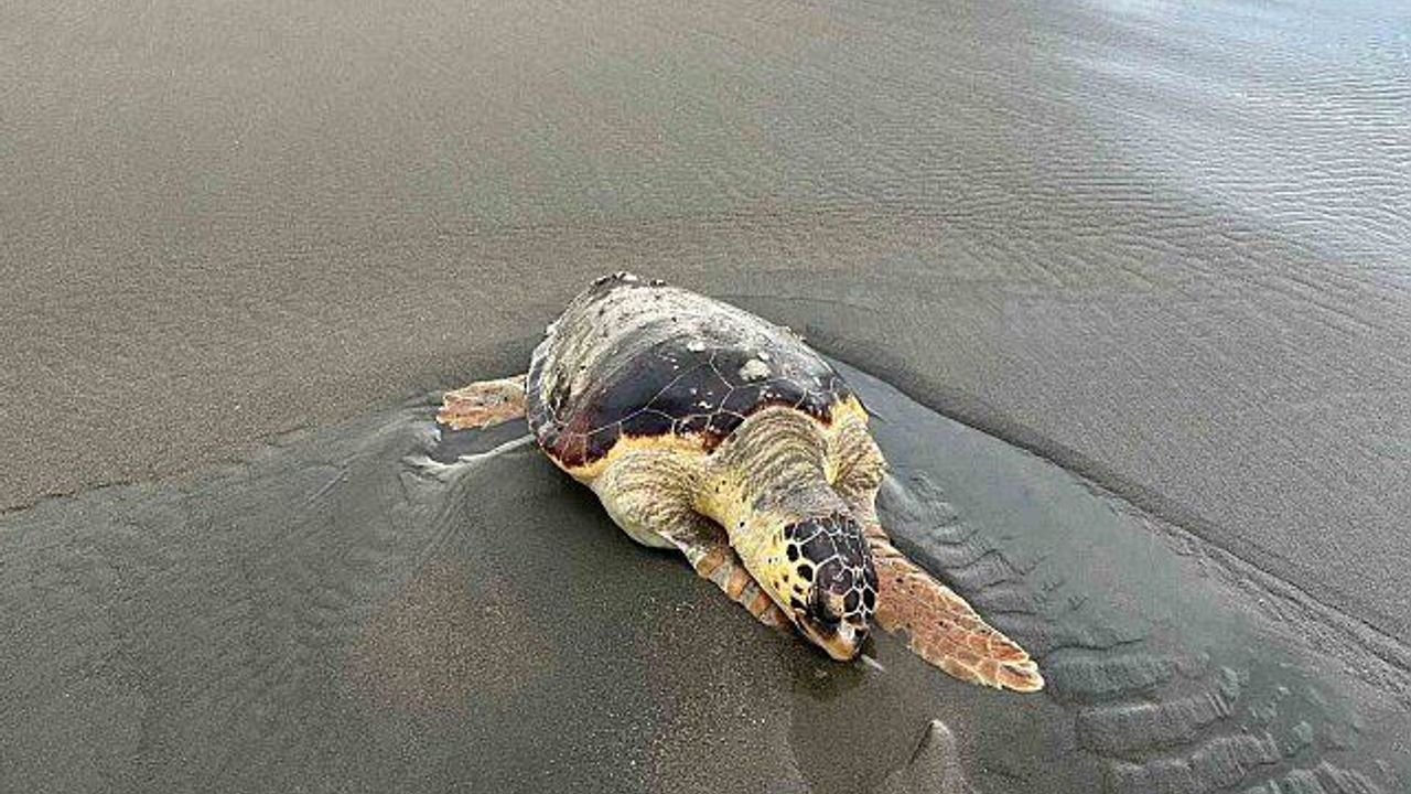 Hatay'ın Samandağ ilçesinde sahilde nesli tehlike altındaki caretta caretta türü deniz kaplumbağası ölüsü bulundu.