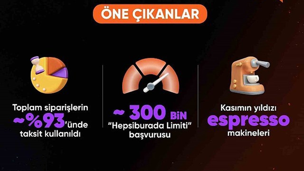 E-ticaret platformunun, aile bütçelerini en çok rahatlatan 'Şimdi Al Şubatta Taksitle Öde' teklifine müşteriler yoğun ilgi gösterdi. Kasım ayında yaklaşık 300 bin e-ticaret platformu müşterisi 'Hepsiburada Limiti' başvurusu yaparken toplam siparişlerin yaklaşık yüzde 93'ü taksit, yüzde 29'u ise erteleme avantajlarıyla gerçekleşti.