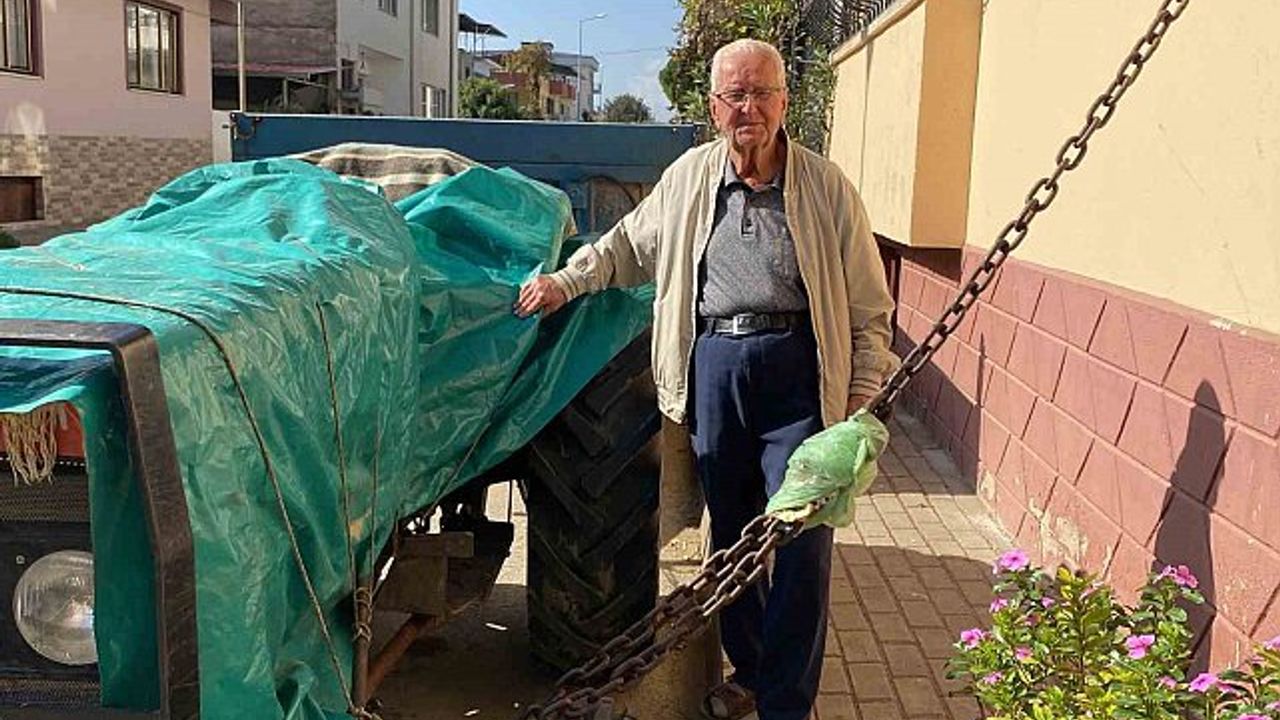 Aydın'ın Germencik ilçesinde yaşayan 81 yaşındaki Erdoğan Bilal'in, evinin önüne park ettiği traktörünün çalınmaması için aldığı önlem görenleri şaşkına çevirdi.