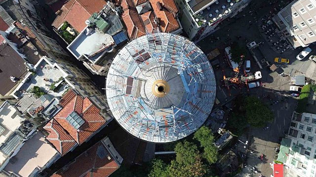 Galata Kulesi 5 gün önce restore edilmeye başlandı. İstanbul'un simgesi kulenin külahındaki çalışmalar dron ile görüntülendi.
