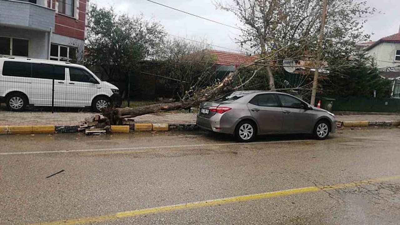 Edirne'nin Keşan ilçesinde etkili olan rüzgar nedeniyle kökünden kırılan ağaç otomobilin üzerine devrildi.