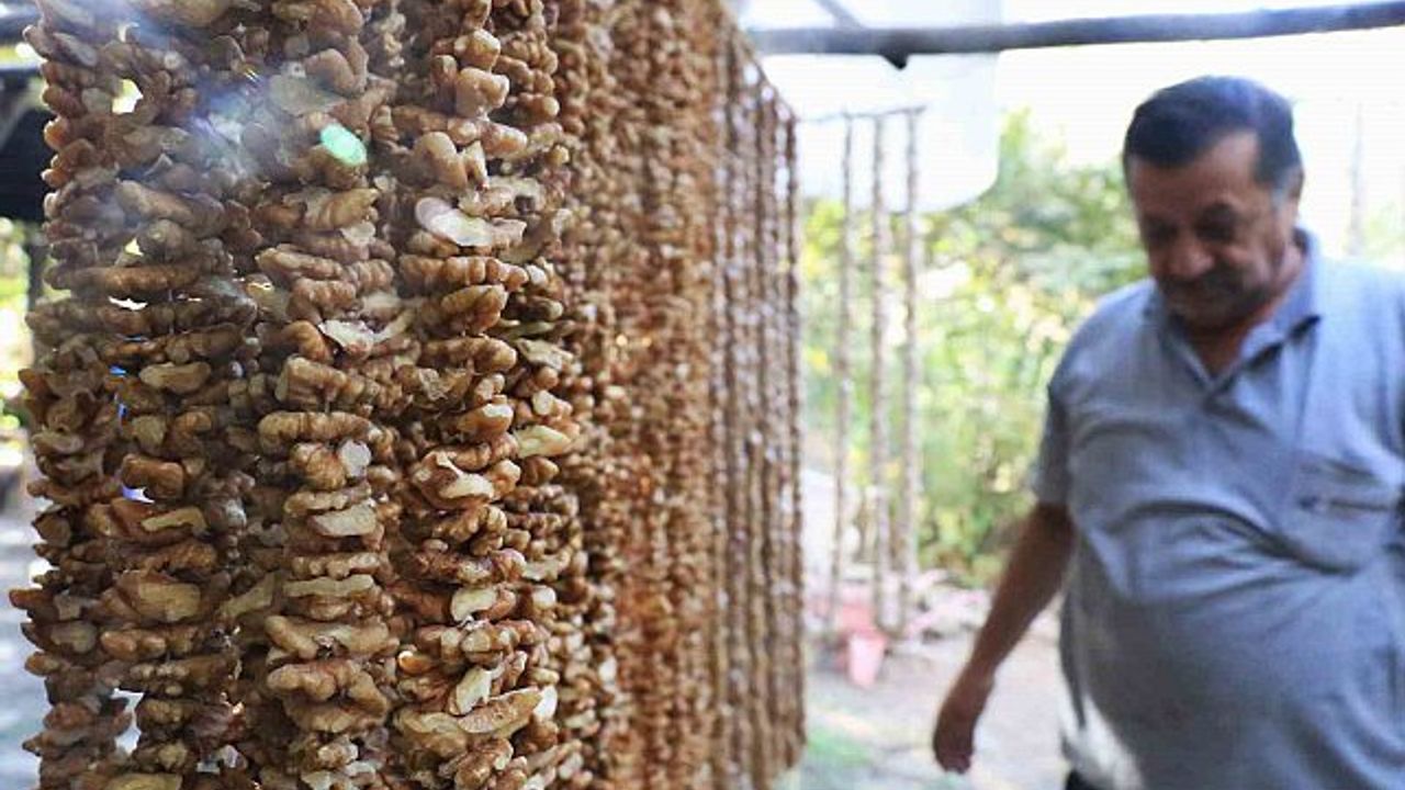 Elazığ'da bağ bozumuyla birlikte köylerde geleneksel yöntemlerle yapılan ve kış mevsiminde çerez olarak tüketilen orcik (cevizli sucuk), Türkiye'nin dört bir yanından ve yurt dışından yoğun talep görüyor.
