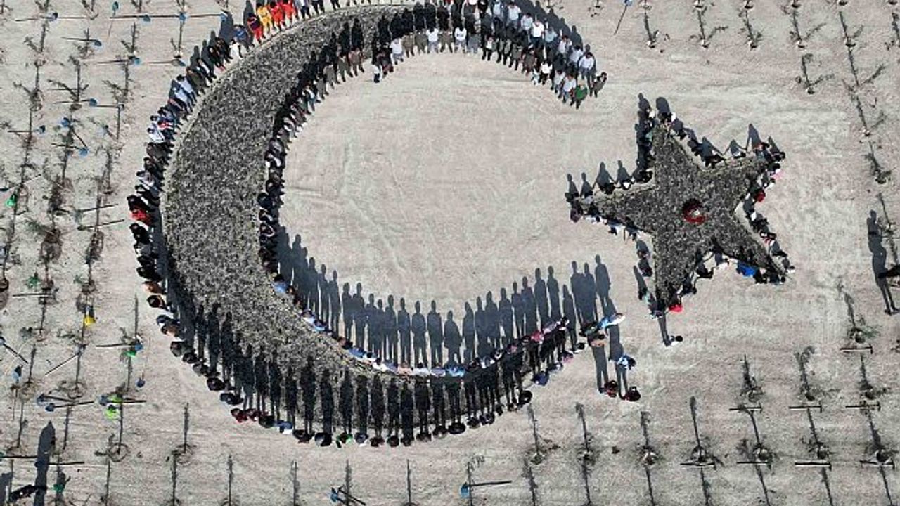 Mut Orman İşletme Müdürü Utku Danış ise, 'Cumhuriyetimizin yüzüncü yılında Mersin'in Mut ilçesinde, 2023 metrekare alanda Türk bayrağı, 2023 adet fidanla işledik. Ayrıca 2023 fidanın yanında tarihte kurulmuş 16 Türk devletini temsil eden 16 ayrı tür dikerek bu etkinliğimizi gerçekleştirdik. Bunların içerisinde Kızılçam, Mavi servi, Kara servi, Altuni mazı, Akasya, İncir, Zeytin, Lavanta, Gül, Çınar, Ardıç, Taflan, Harnup, Menengic, Ceviz ve Antep fıstığı kullanarak sahamızı güzelleştirdik Mut ilçemize ve Mersin'e hayırlı olması dileğiyle' dedi.