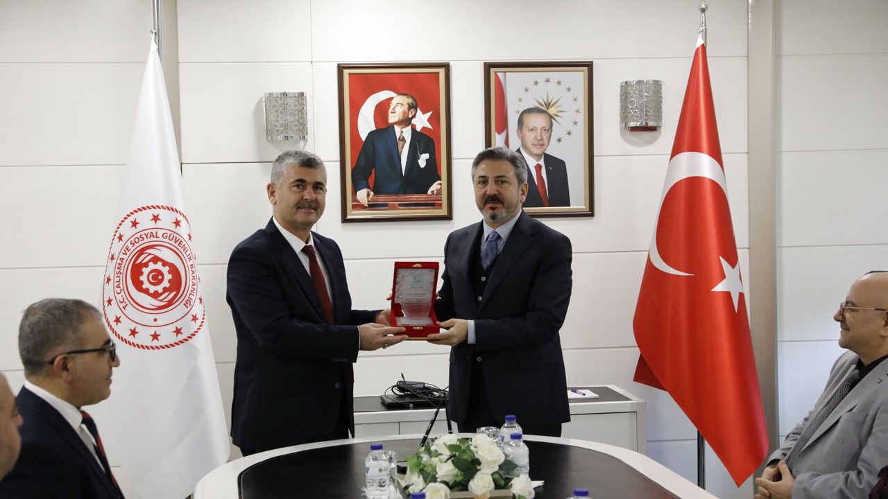 Ziyarette, Bakan Yardımcısı Ahmet Aydın’ın çalışma barışının güçlendirilmesi, çalışan haklarının korunması ve mobbing ile mücadelede gösterdiği hassasiyet özel bir yer tuttu. MEYAD yönetimi, Aydın’ın bu alandaki katkılarını 10 Aralık Dünya İnsan Hakları Günü kapsamında hazırlanan özel bir teşekkür plaketi ile onurlandırdı. Plaket, insan onurunu ve adil çalışma koşullarını esas alan yaklaşıma duyulan saygının bir sembolü olarak takdim edildi.