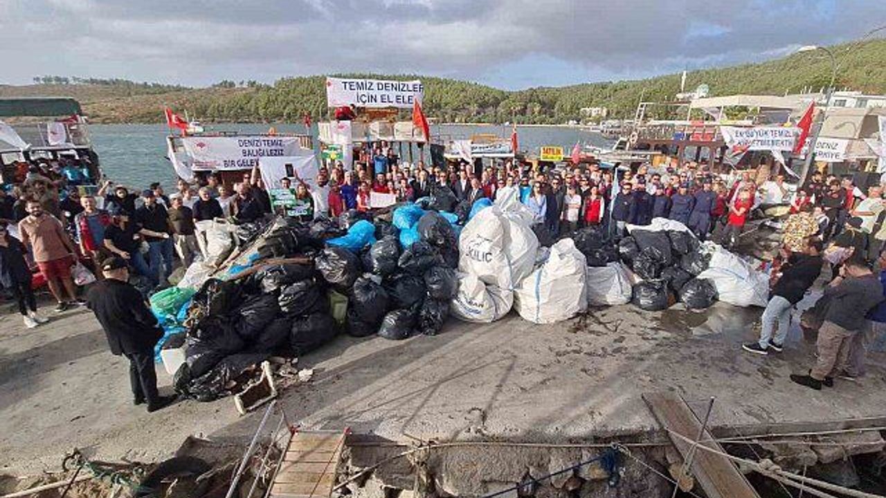 Muğla ve Bodrum ilçesinde yapılan deniz dibi, kıyı ve hayalet ağ temizliğinde 15 tona yakın atık toplandı.