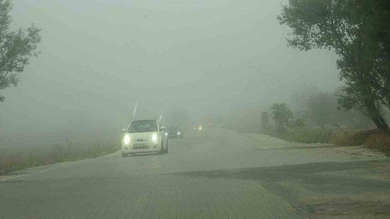 Muğla'nın Menteşe ilçesinde yoğun sis nedeniyle görüş mesafesi 10 metreye kadar düştü.
