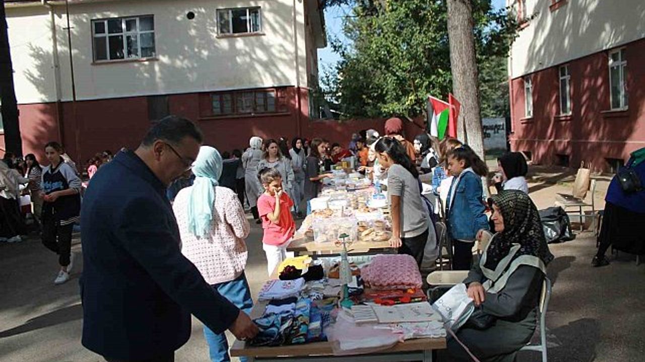 Eskişehir'de bulunan bir ortaokulda Gazze'ye yardım için düzenlenen hayır çarşısında öğrenciler ve veliler tarafından 82 bin TL toplandı.
