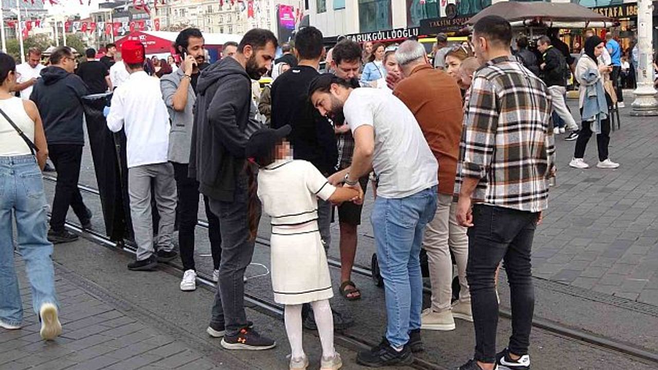 Taksim'de 10 yaşındaki kız çocuğu, Rus turistlerin çantasını çaldı. Olayı gören polis ekipleri anında müdahale ederek küçük kızı suçüstü yakaladı.