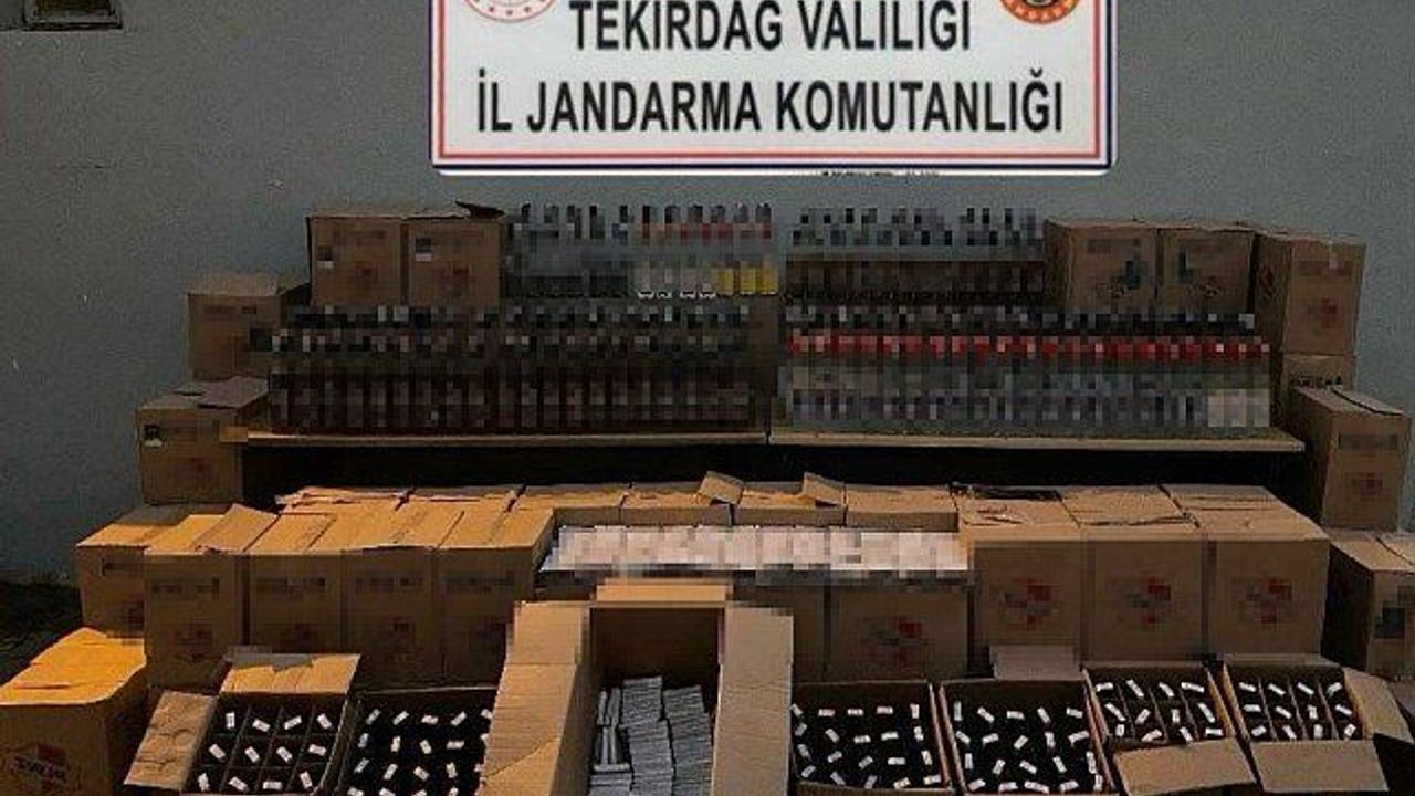 Tekirdağ'ın Şarköy ilçesinde bir adreste yapılan aramada 618 litre bandrolsüz içki ve binlerce makaron ele geçirildi.