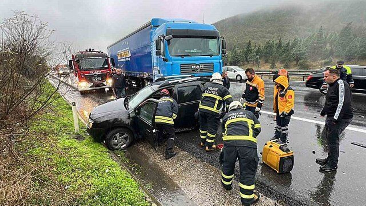 TEM Otoyolu Düzce geçişinde 4 aracın çarpıştığı kazada 3'ü çocuk 7 kişi yaralandı.
