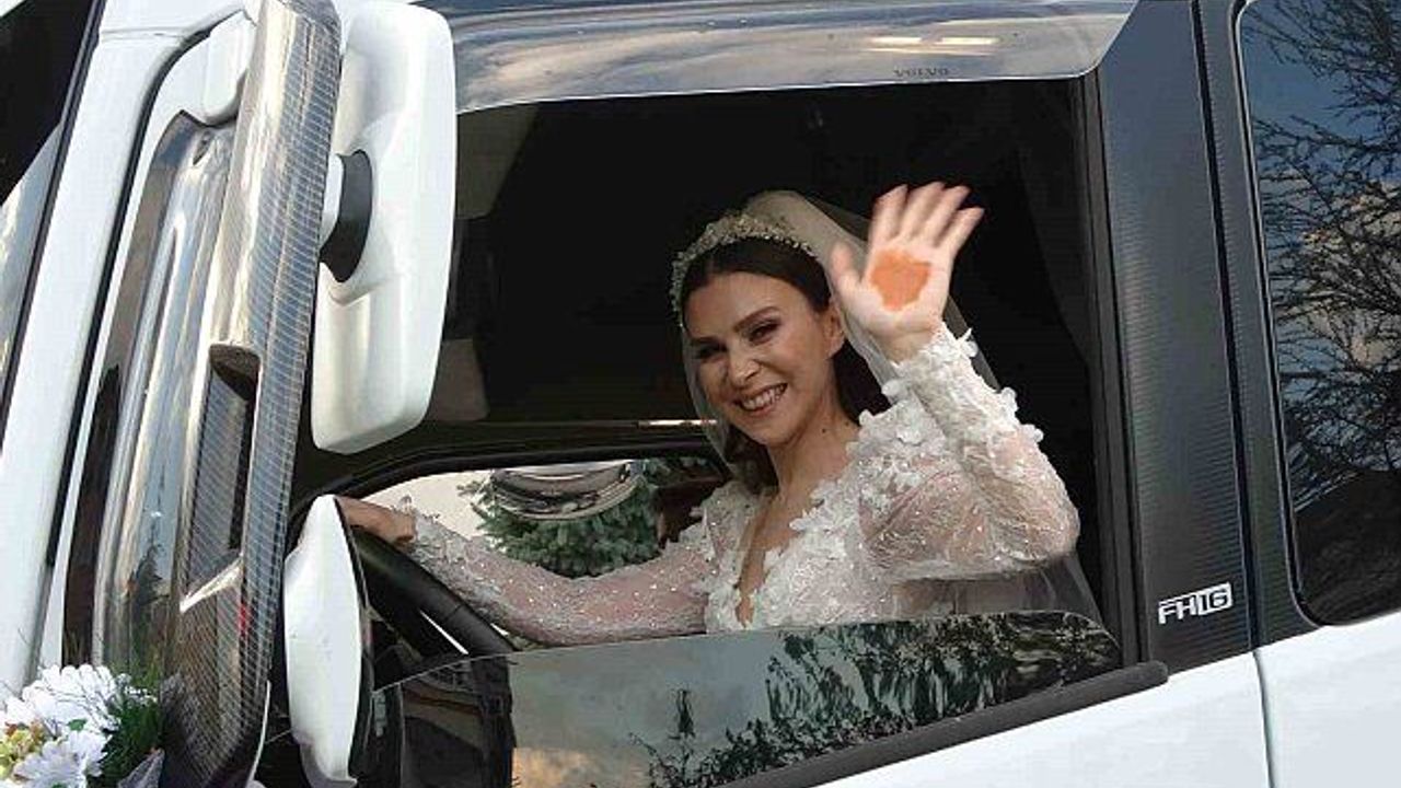Gelinliği ile tır kullanmanın hayali olduğunu söyleyen Elif Felek ise 'Tır kullanıyorum, inşallah salona kadar ben götüreceğim. Bugün en mutlun günümüz. Bu benim en büyük hayalimdi. Gelinlik ile tır kullanan daha önce hiç görmedim. Çok mutluyum ve eğlenceli' diye konuştu.