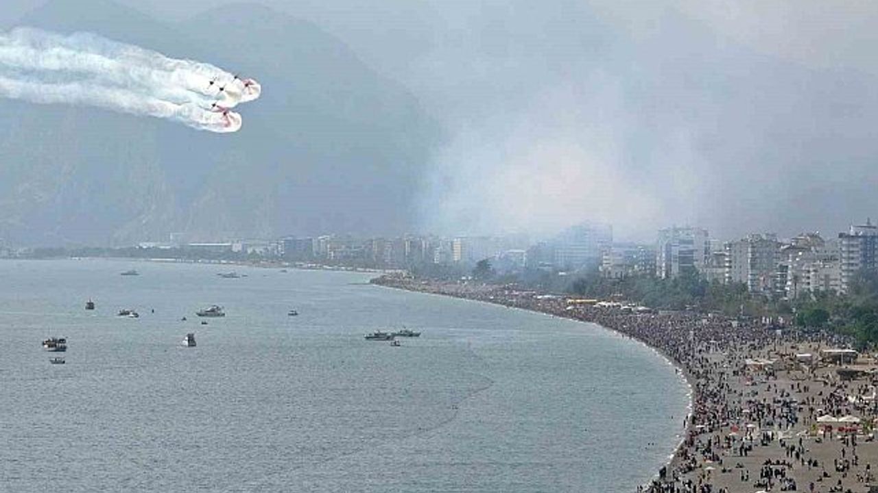 Yaklaşık yarım saat süren gösteri uçuşundan saatler öncesi Konyaaltı Sahili'ne gelen Antalyalılar ve turistler, sahil ve falezler kısmını hınca hınç doldurdu. Sahildeki doluluk görüntüsü Antalya'nın yaz aylarını aratmazken, falezlerden uçuşu izlemek isteyen bazı vatandaşlar çitleri aşıp yerini aldı.