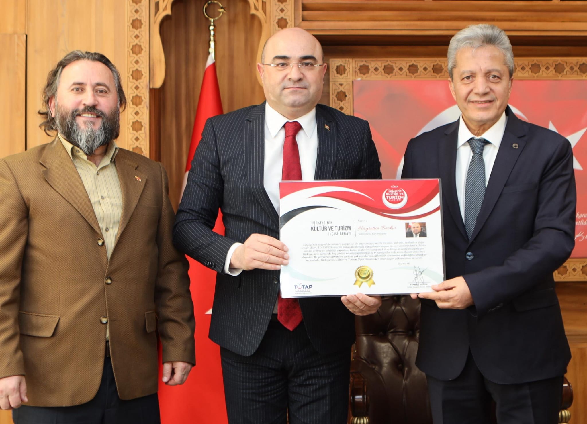 Başta Sayın Vali Oktay Çağatay olmak üzer tüm makam ziyaretlerinde Türkiye’nin Kültür ve Turizm Elçiliği Beratları ile UNESCO unsurlarımızın yer aldığı “DÜNYA MİRASI TÜRKİYE” Kitabı takdim edildi.