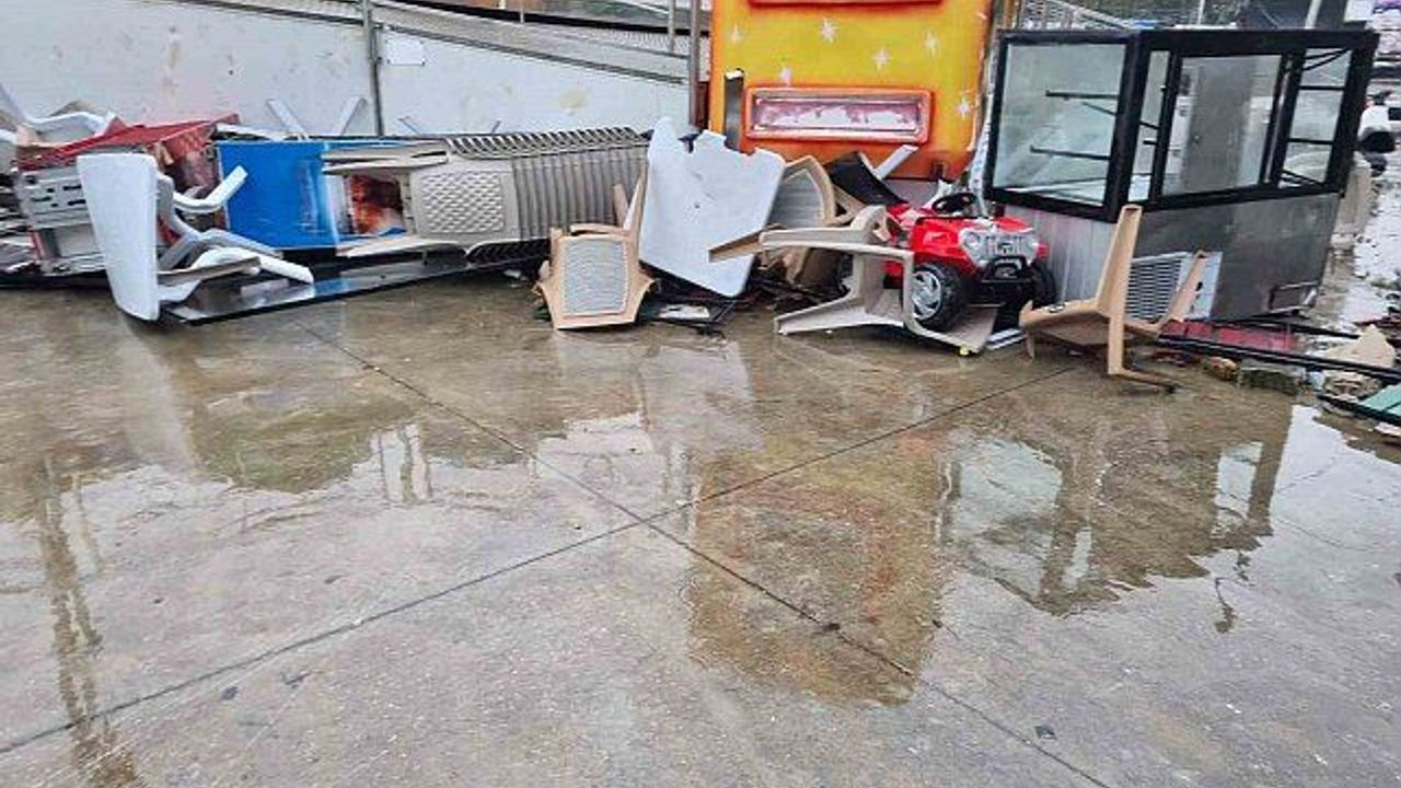 Yalova'da kent merkezinde bulunan lunapark, yaşanan fırtınada ağır hasar aldı.